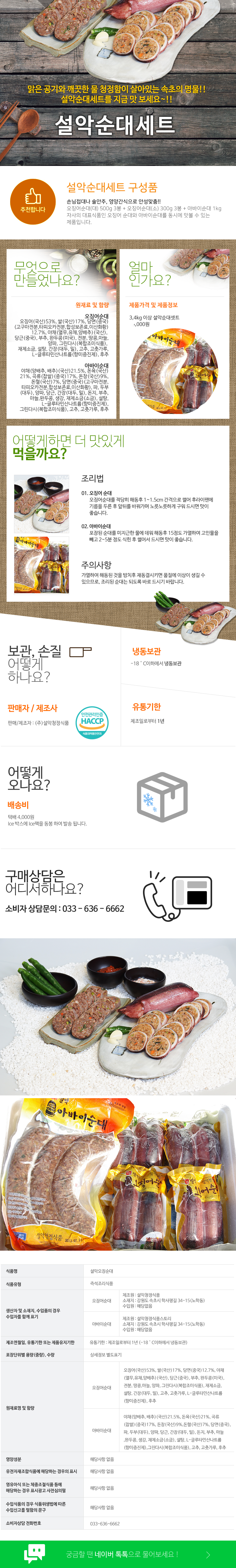 생산자 및 소재지 (수입품의 경우 생산자, 수입자 및 제조국) 주식회사 설악청정식품 / 강원도 속초시 학사평길 34-15
